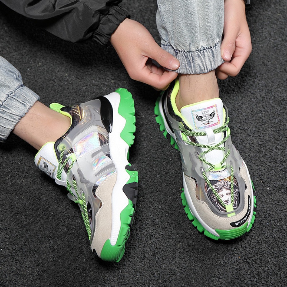 Spring New Sports Running Sneakers Thick-Soled Flying Woven Personality Hip-Hop Trendy Shoes