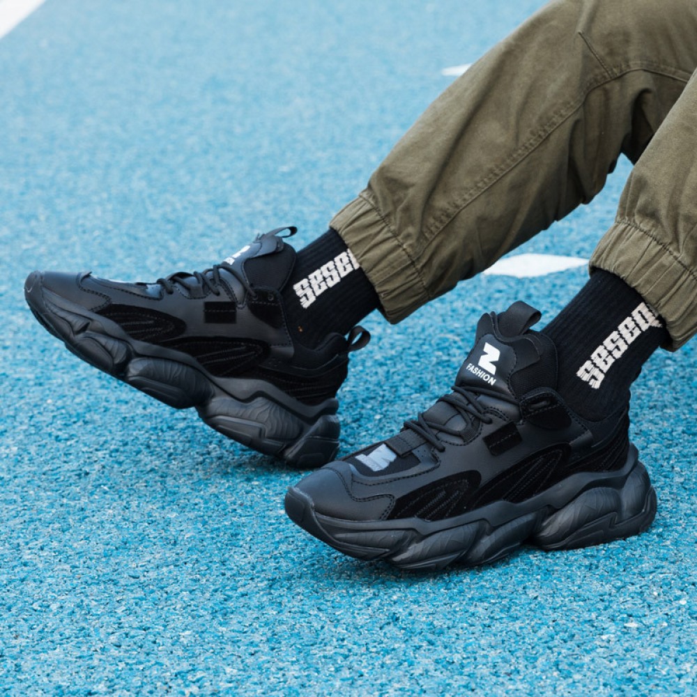 Men's Leather Shoes High-Top Sports Casual Sneakers