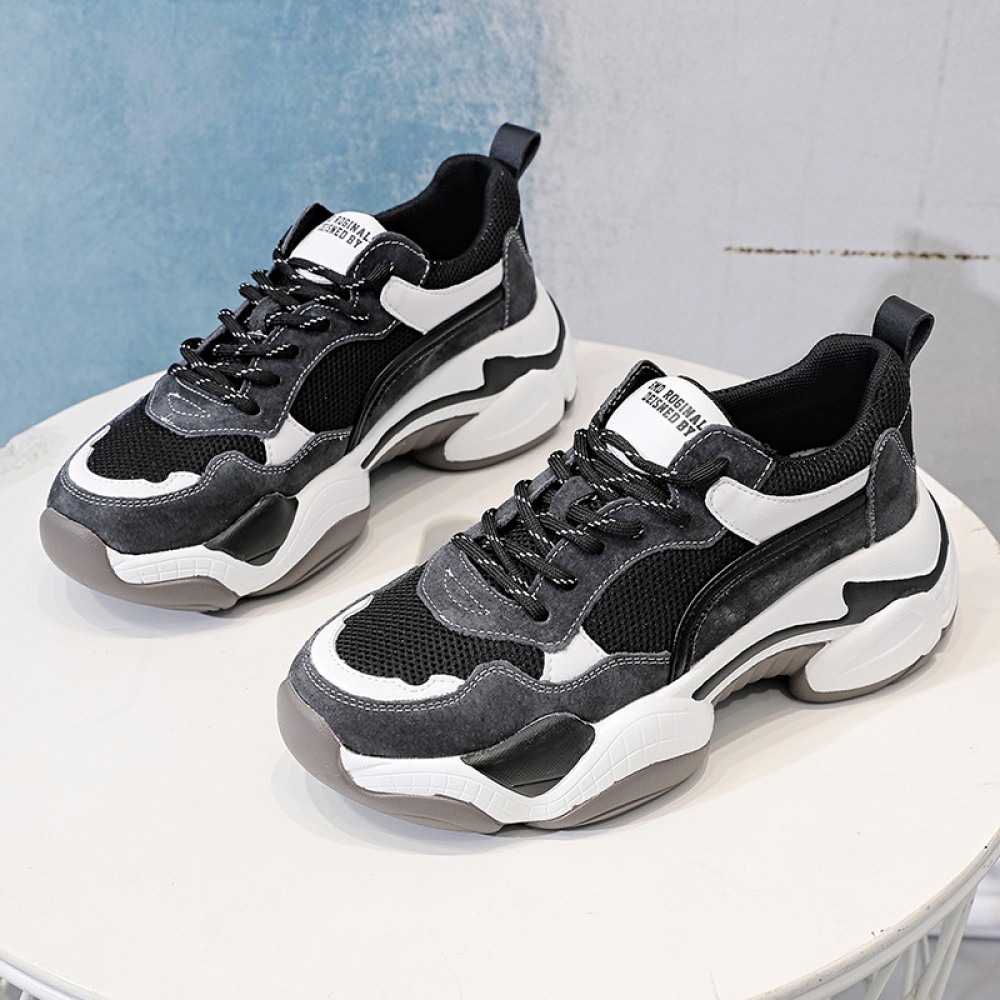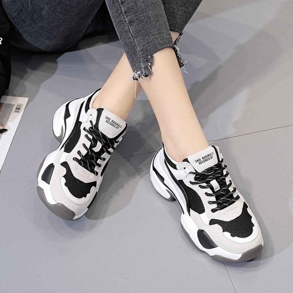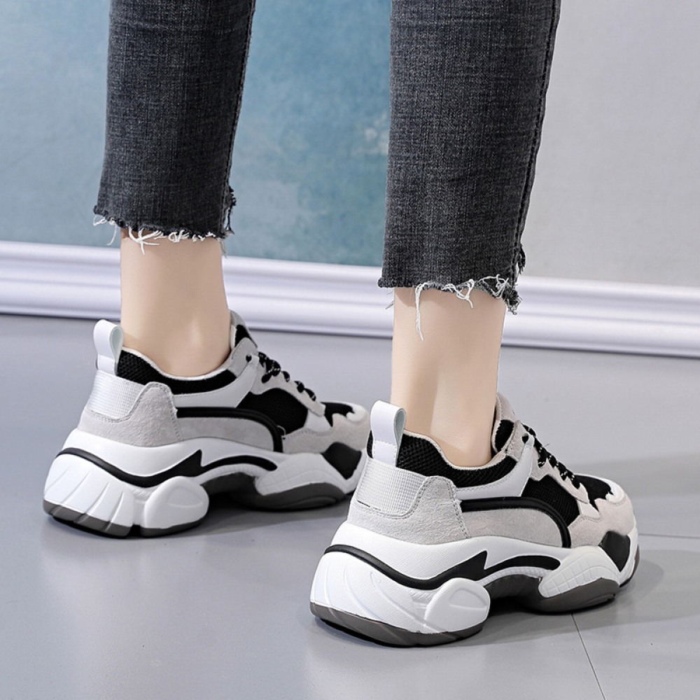 Women's Autumn New Casual Sports Shoes Color Matching Thick-Soled Breathable Plus Velvet Shoes