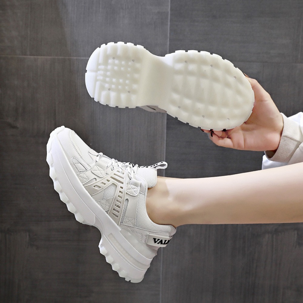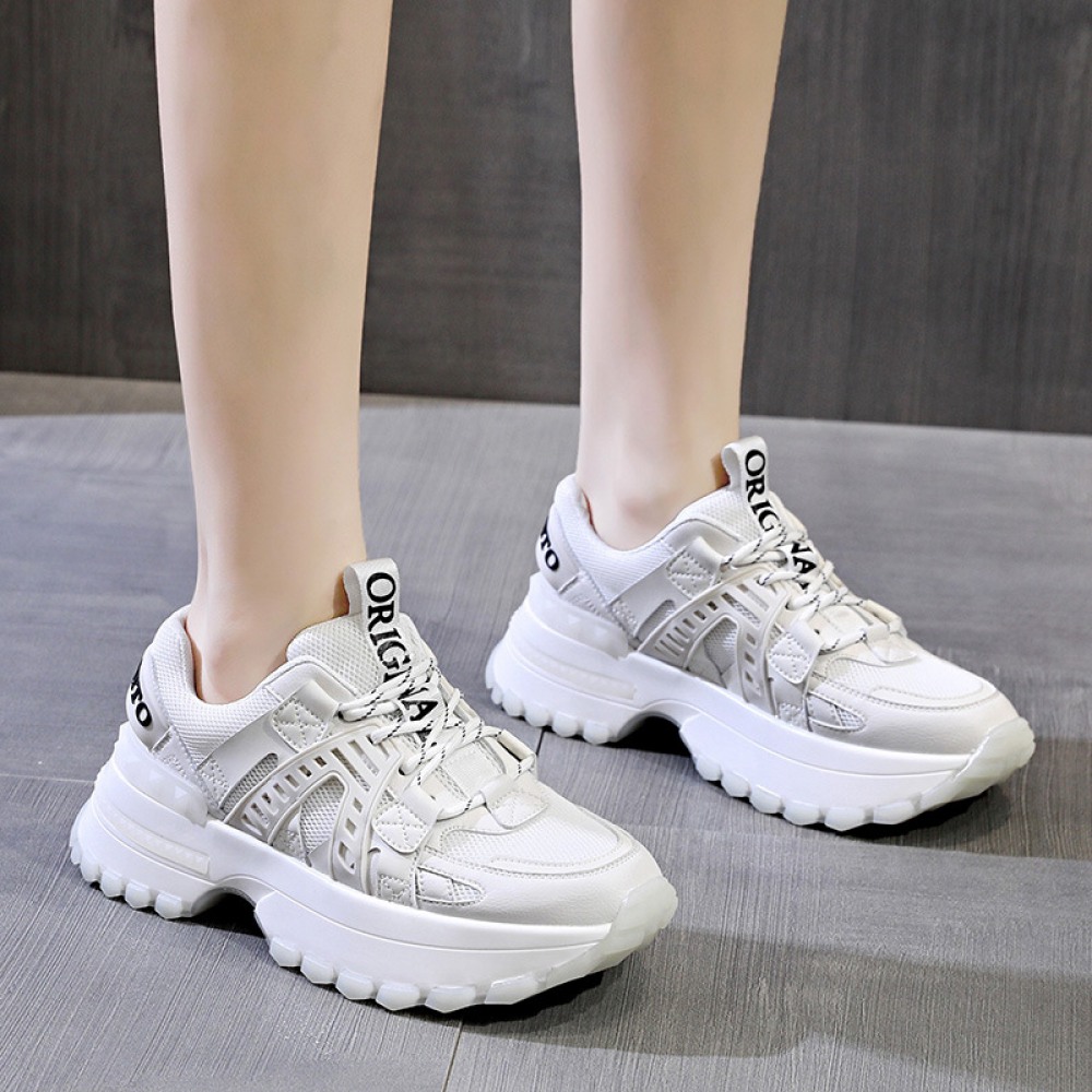 Women's New Thick-Soled Shoes Breathable Round Toe Casual Sports Shoes White
